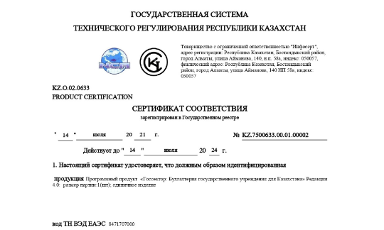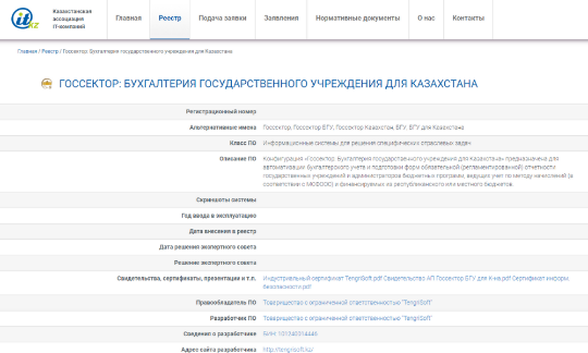Входит в реестр программных продуктов и продукции электронной промышленности казахстанских IT компаний